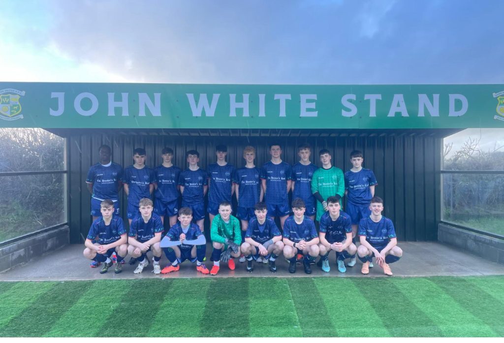 However, commiserations must also be given to the CBS U16 soccer players, and their coaches Mr Bohane and Mr Houlihan, who lost 3-1 to CSN last week in the Cork Schools Competition. Picture taken in the aptly named ‘John White Stand’, at Park United, a new and fitting tribute to the late colleague the school.
